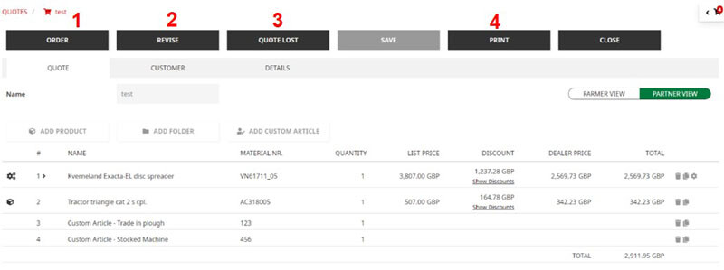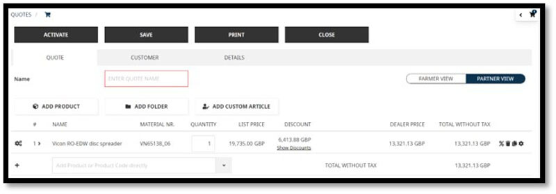 With the help of the ordering tool, you are able to create quotes for the products of the Kverneland Group for your customers and then to order them directly.